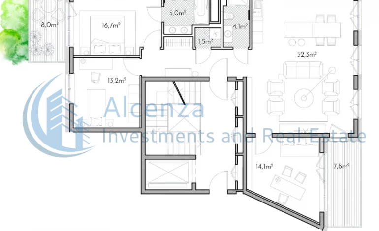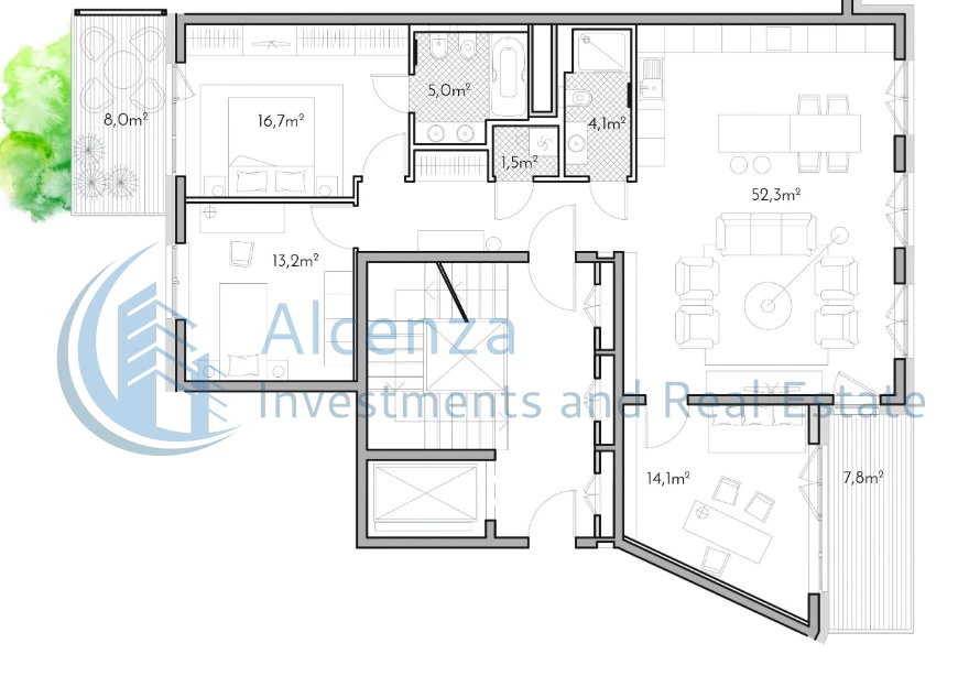 Balkons 22m2.